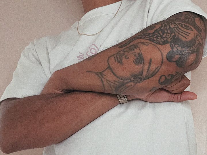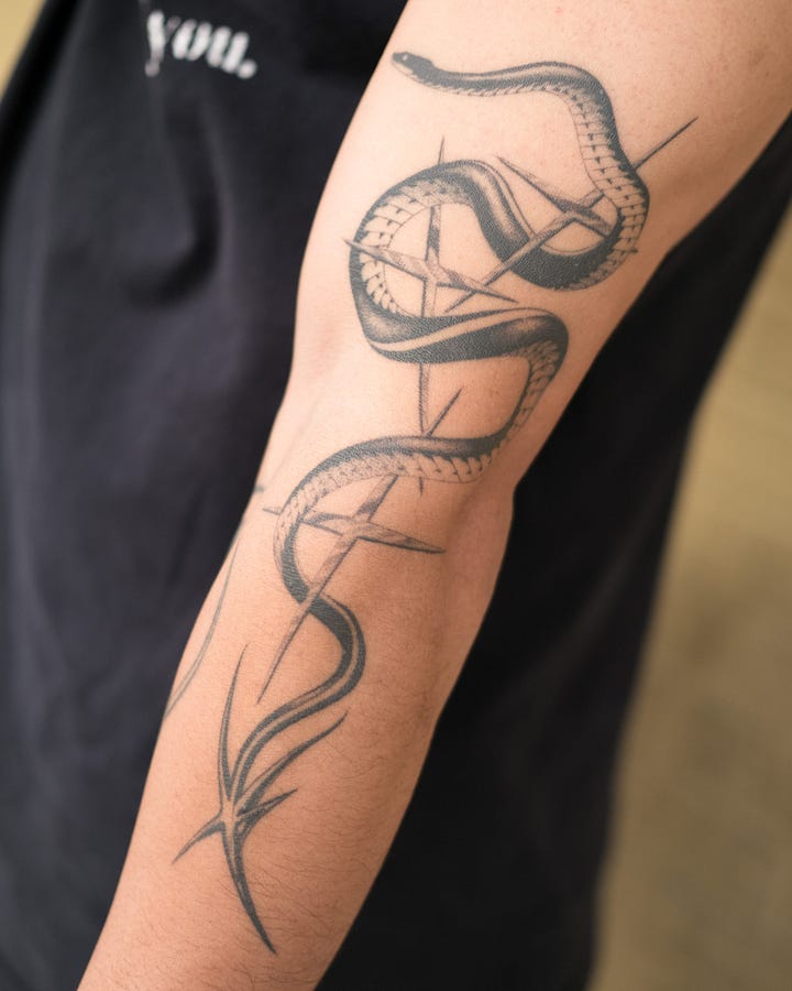 It feels like everyone in my friend circles is actively looking to get tattooed right now. Our 3sixteen NY team routinely rolls in with fresh ink and talks about who they’re trying to get an appointment with next. A close friend just started getting tattooed in 2025 when he hit a milestone year and now he cannot be stopped. Tattoo artists who are friends of the brand come into the shop and tell us that they are booked out for months. Viv Chen even posted a video about how she currently sees getting tattoos like having kids, i.e. “I’m not actively trying to get tattoos, but if it happens it happens” - a sentiment I vibe with heavy.