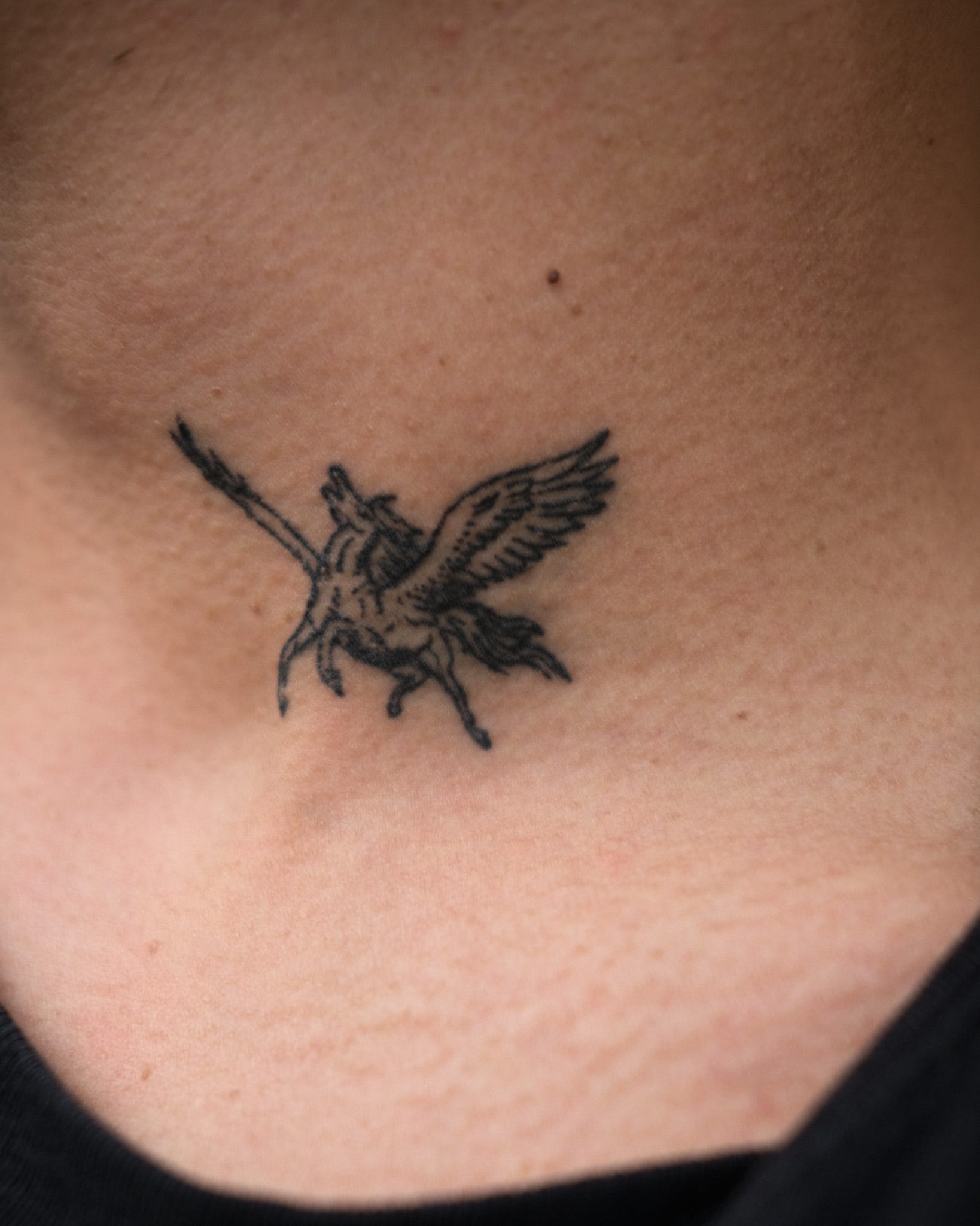 I got my first neck tattoo last week—sorry mom. It's by @e.p.alexanderssssss and it's of a little pegasus. I had originally wanted to get an angel, but flipping through his flash, the little winged horse called my name.